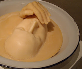 Jälkiruoka kyllä maistui. Appelsiineja ja hunajaa -blogista löysin Yelianin jäädytetyn banaani-jugurtin ohjeen eli Frozen Yogurt. Mainio jälkiruoka: rasvaa sen mukaan, mitä jugurttia valitsee, sokerina vain vähän hunajaa, ja hedelmät maun mukaan. Banaanien pakastaminen etukäteen vaikuttanee makuun, vaikka en ole ihan varma. Aikaa tähän menee, mutta muun ohessa ja koneethan ne työn tekee.