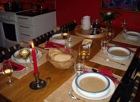 En yhtään muista, mistä olen ohje on peräisin, mutta todella hyvää se taas oli. Valion valmiskermavaahdosta tehtiin ruusuke keiton pintaan lautasella ja siihen pannulla rapeaksi paahdettuja valkosipulilastuja, mikä teki siitä juhlallisen herkun.