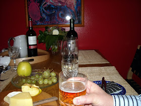 Pääruoaksi tein porojauhelihasta, jumboherkkusienistä ja erivärisistä paprikoista piirakan ruis-perunakuoreen. Siitä ei tällä kertaa tullut erityisen maukasta, suolaa ainakin oli liian vähän.
