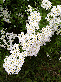 On ihan outoa, kun kaikkialla kukkii samaan aikaan tänä vuonna. Pihalla norjanangervot ja virpiangervot, tuomet tuolla kauempana täydessä kukassa, ja samaan aikaan jo pihlajatkin kukkivat työhuoneen ikkunan edessä. Talon takana syreenirivistö vasta virittelee nuppujaan, mutta kaupungilla syreenitkin kukkivat jo.