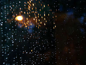 Se synkkä ja myrskyinen yökin tuli sitten. Oli niin eksoottisen näköistä, kun oli jo melko pimeää ja sateista, ja katuvalot heijastuivat ikkunaan.