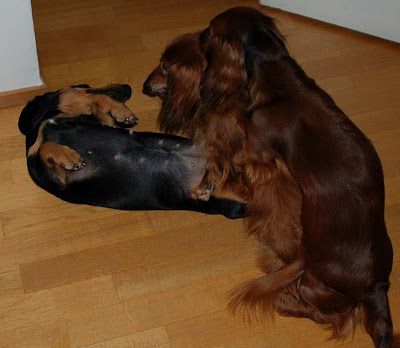 Rita, onneksi tuo poikakoira oli steriloitu, tytöt vaan antoivat hormoniensa viedä:)