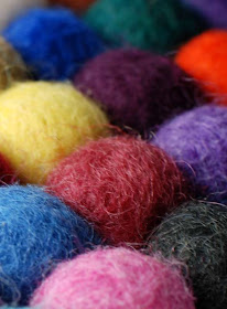 Katselin jo noista yläpalloja, kun olit laittanut ne sinne. Kerrassaan ihania. Villassa värit tulevat mukavasti esille, jotenkin pehmeästi.