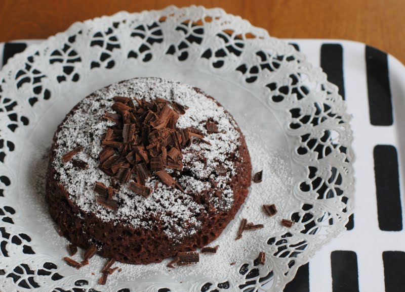 Ja siellä vihkossa oli tällainen pieni suklaaherkku, jota tuli nopeaan kahvikakun tarpeeseen tehtyä kerran jos toisenkin, tämä kakku nimittäin valmistuu kolmessa minuutissa! Minuutti sekoittamiseen ja kaksi uunissa. Pyöreäpohjainen pieni Teema-kulho on paistamiseen mitä sopivin.