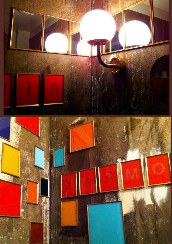 Kävin tässä taannoin yhden taidelaitoksen pienessä vessassa, joka yllätti positiivisesti ideoillaan. Vanhan talon tuntua ei ollut yritettykään hävittää, vaan seinät oli käsitelty rouheasti kuparinväriseksi. Kullanvärisiin valokuvakehyksiin oli sijoiteltu erivärisiä kartonkeja ja lampun taakse peilejä.