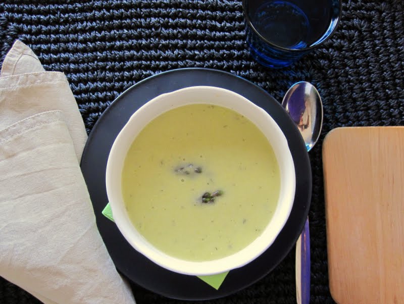 Leivän seurana maistui ihanalta kevään ensimmäinen parsakeitto. Kuvassa keiton koristeena oleva nuput kyllä vajosivat pohjaan. Löysin inspiksen tähän Omenamintulta. Hänen keitossaan on käytetty mausteena minttua, meillä se oli kuivattua, mutta kyllä sillä hentoa mintunaromia sai loihdittua parsaan. Keitto on joka tapauksessa hyvää: vain nippu parsaa ja desi kermaa.