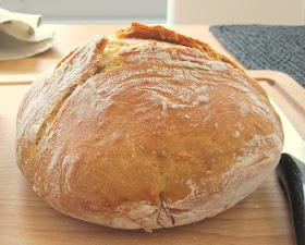 Ystäväni Minna vinkkasi naamakirjassa tästä leivästä ja tietysti tartuin syöttiin. Tämä kuuluu sarjaan vaivaamaton eli No-Knead Bread. Taikina siis vain sekoitetaan ja annetaan makujen tekeytyä pöydällä yön yli. Siinä niitä aromeja kehittyy. Jauhojen on myös syytä olla tuoreita, ei mitään viimekesäisiä mökinkaapista talteen talveksi tuotuja. On nimittäin tullut tehtyä aika kitkerääkin leipää joskus jostain ikivanhoista grahamjauhoista.