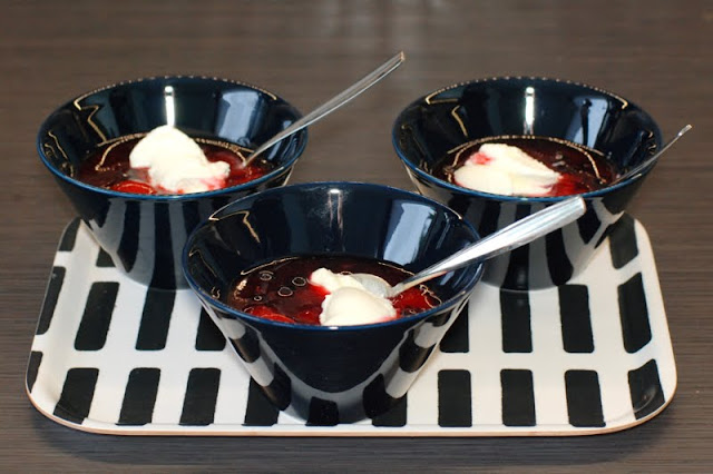 Jälkiruoaksi raikastettiin suuta tuoremarjakiisselillä ja turkkilaisella jogurtilla.
