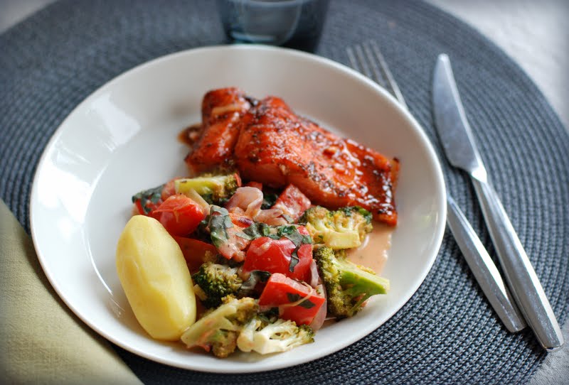 Me tykättiin kovasti! Voimakkaat mausteet sulivat sopuisaksi liitoksi vaahterasiirappiin, joten sen enempää paprika, savu, karkemumma kuin chilikään ei hyökännyt lohessa esiin, ei edes makeus häirinnyt.