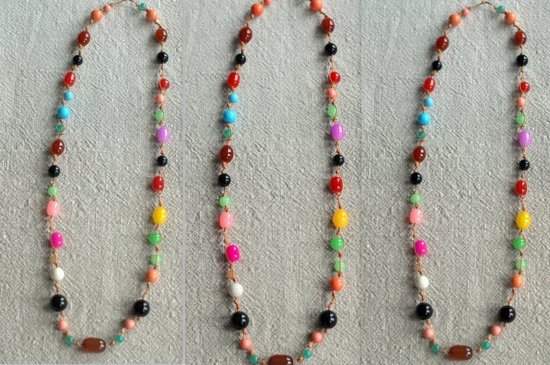 Vaihteeksi on kiva käyttää iloisenkirjavia helmiä tuomaan piristystä johonkin yksiväriseen asuun.