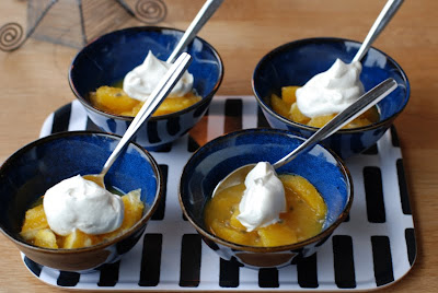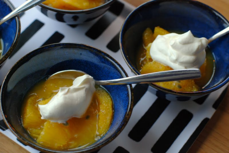 Pääruoaksi tein taas toista lemppariani eli teriyakilohta ja parsakaalia. Jälkiruoaksi olin aamulla jo irrotellut kolmen appelsiinin lohkot kalvoistaan ja sekoittanut ne kuorista puristetun mehun, vaniljasokerin, hunajan ja konjakkitilkan kanssa pikkukulhoon maustumaan. Päälle puristin vielä sisustan kahdesta passiohedelmästä ja valmista oli. Jääkaappiin vaan maustumaan.