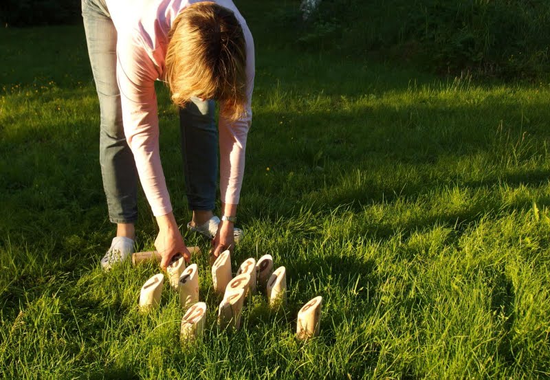 Vaikka tumma onkin, ei tässä kuvassa ole Ulla, vaan toinen siskoistani Mölkky-pelin tiimellyksessä.