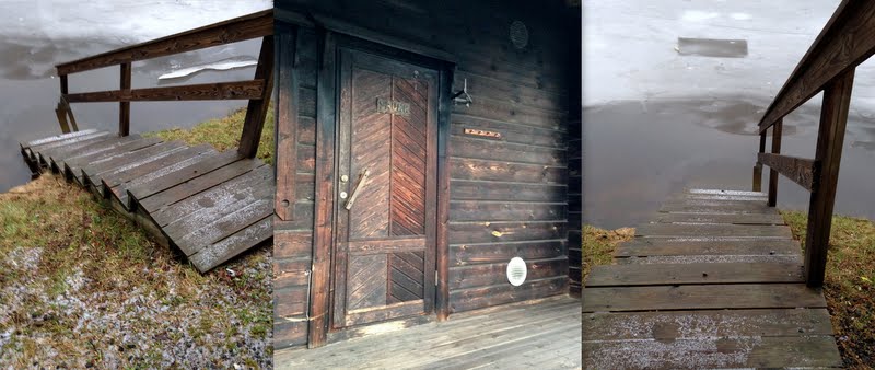 Savusaunan ympärillä on ihanan puhdas savun tuoksu. Laiturille ei tekisi mieli paljain varpain hihhuloimaan, vedestä nyt puhumattakaan.