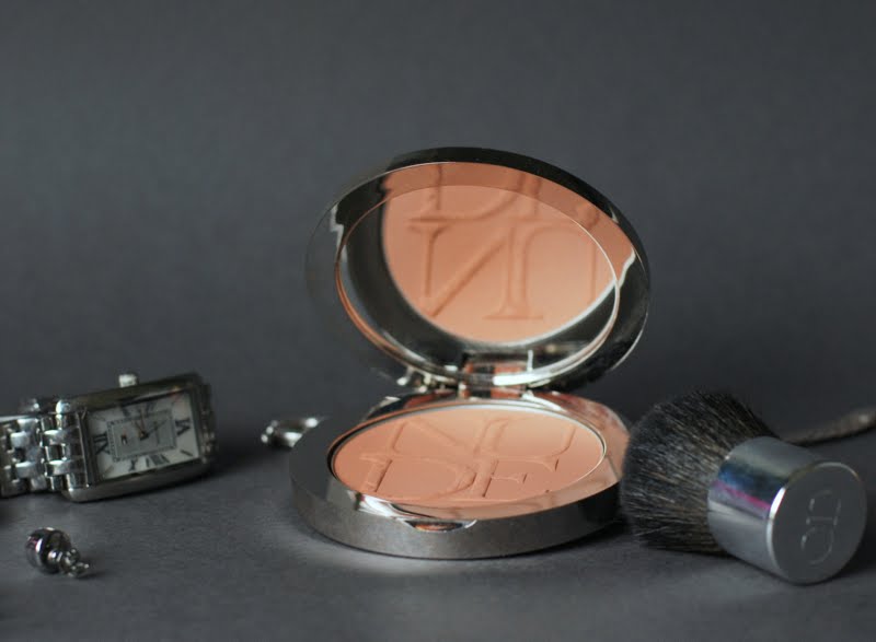 Diorin pakkaus on paitsi kaunis ja kiiltävä, myös ihanan painavaa metallia. We care -aurinkopuuterini on lievästi sanottuna vaatimaton ilmestys tähän verrattuna ja siirsinkin sen nyt matkameikkipussiin, jonne se kevyenä sopii.