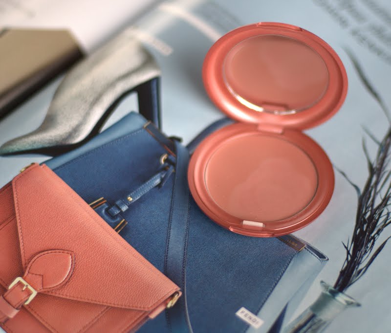 Vasemmassa nurkassa seisoo tärkeän näköisenä suuri ihastukseni, Real Techniquesin Buffing brush. To buff on suomeksi kiillottaa, mutta kiillotusharja kuulostaa kyllä enemmän suutarin työkalulta. Tällä nyt joka tapauksessa olen alkanut levittää värivoiteen ja tulos on yllättäen paljon parempi kuin sormin levitettynä, myös helpompaa. Jälki on ohutta, väri leviää kauniisti ja sen saa häivytettyä kaulalle hyvin. Aiemmin olen kokeillut litteitä synteettisiä siveltimiä, mutta niillä jäi raitoja.