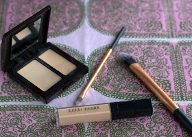 Bobbi Brownin peitevoide silmien alle on myös menneen kesän hankintoja. Kosteassa ja hikisessä kesäsäässä ei Cliniquen valokynästä ollut mihinkään, se hävisi kostealta iholta jo levitysvaiheessa, joten oli keksittävä muuta. Astelin Bobbi Brownin pisteelle Sefridgesin Naisten paratiisissa ja myyjä valitsi sopivan värin peach 7. Itse olisin pitänyt sitä ilman muuta liian tummana. Hän levitti värin paikalleen leveällä siveltimellä. En olisi uskonut ollenkaan, että siitä tulee niin huomaamaton. Olen opetellut itse tekemään samoin ja huomannut saavani hyvää, yllättävän tasaista jälkeä. Synteettisellä siveltimellä yltää silmänurkkaan paremmin kuin sormella taputtamalla. Tummat silmänaluset peittyvät, silmäpussit häivyttyvät vähän ja väri myös asettuu pysyväksi siellä, mihin se sivellään, ja se on minulle uutta!