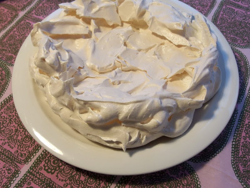 Hitsi, sellainenhan sen juuri pitääkin Pavlovassa olla! Herrrkullisen tahmeaa jauhettavaa suussa sen rapsahtavan ihanan kuoren alla. Täytekakun väliin tarvitaan tietysti sitten erilaista, läpeensä kuivaa pohjaa. Selailin vähän neuvoja ja löysin Nelleltä toimivan ja idioottivarman ohjeen, jonka hän puolestaan oli lukenut Olivian Täydellinen ohje -keittokirjasta. Tässä se tulee.