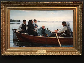 Olin kerran kiertelemässä Edelfelt-näyttelyssä ja kuljin tämän taulun ohi, kun sen eteen oli istunut ryhmä pieniä koululaisia. Esittelijä tai opettaja kysyi lapsilta, mikä aika päivästä taulussa oli, ja mikä vuodenaika. -Jestas, huomasin etten koskaan ollut pohtinut moista tauluja katsoessani. Huomasin taas kerran, että olen hotkija kuvien katselussa niin kuin olen lukemisessakin. Liika nopeus kostautuu, hitaasti saisi paljon enemmän irti kaikesta.